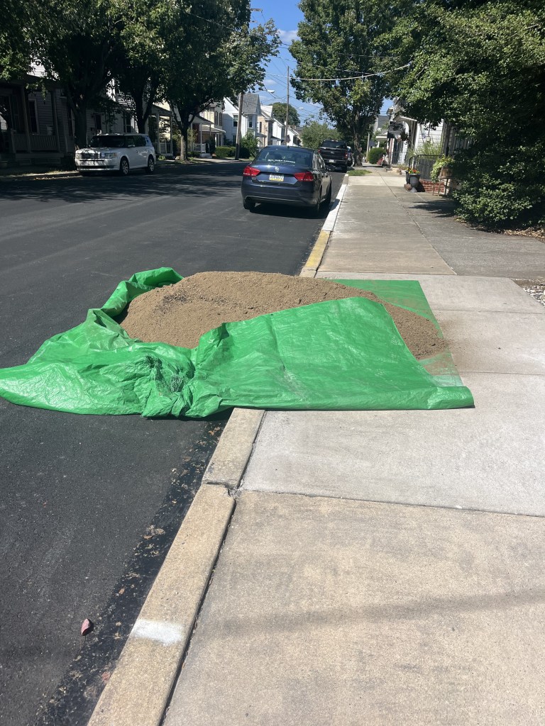 Sept 11- expanding the flower beds out front meant breaking up concrete and moving this pile of dirt into place. I’m thankful for the neighbors who helped out with the concrete part.